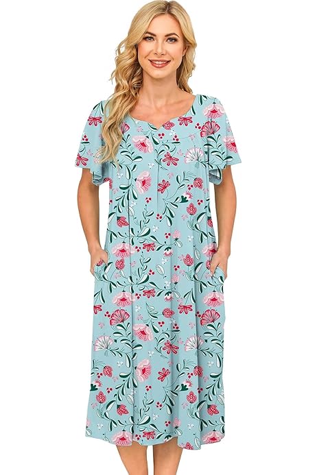 Ekouaer Women S Nightgown Short Sleeve Lounger House Dress Floral Mumu Patio Dress With Pockets S Xxxl At Amazon Women S Clothing Store